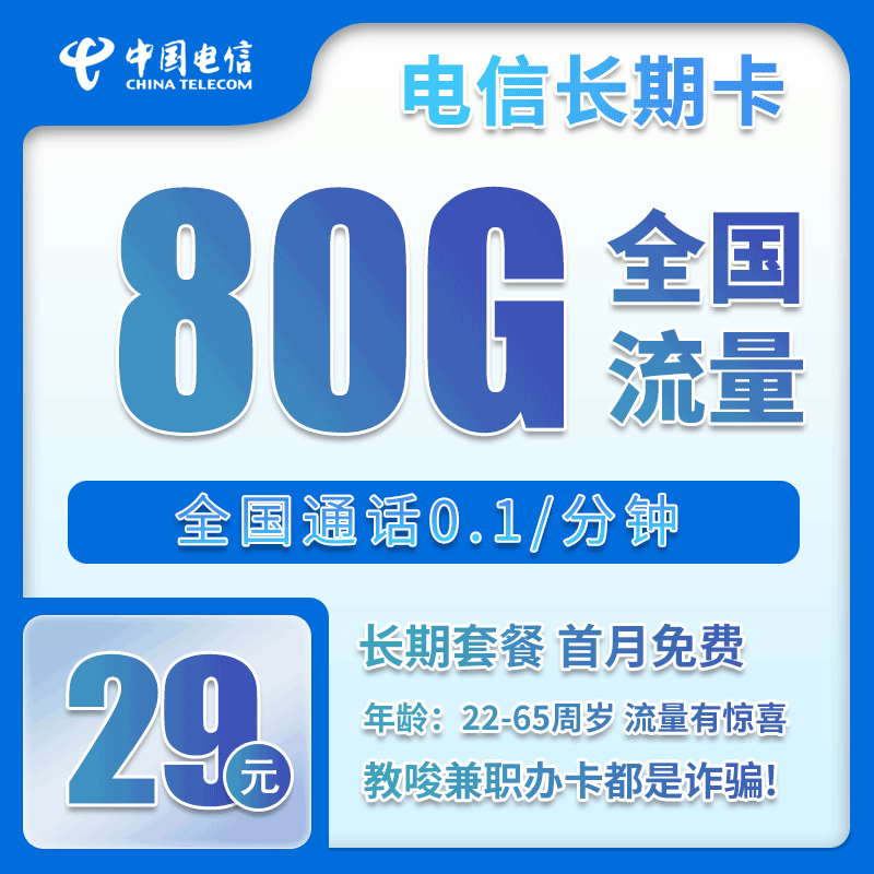 29元192G全国通用流量+0.15元/分钟(首月免费,收货地即为归属地)